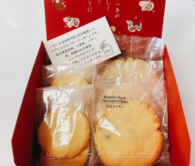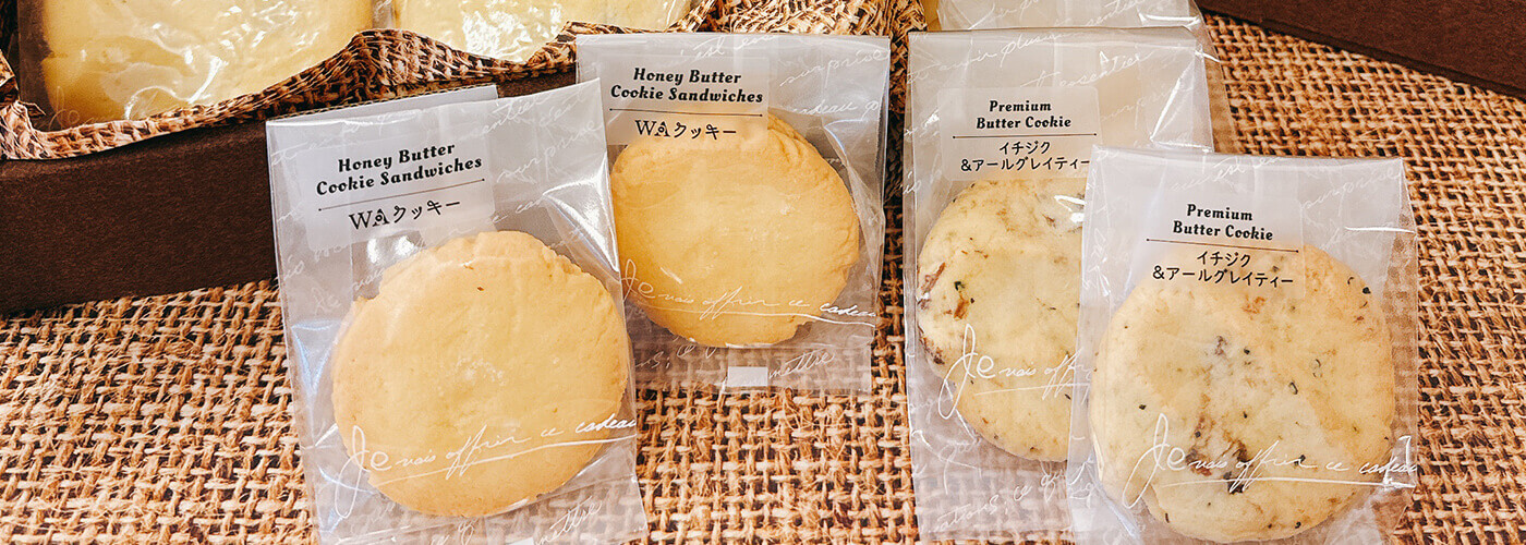 北海道産『よつ葉バター』に埼玉県産米粉と上質な小麦粉を加え、卵、粉糖だけでシンプルに作った『プレミアムバタークッキー』です。